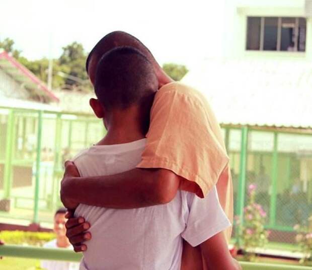 Отец и сын долго обнимались и трогательно общались на глазах у изумленных свидетелей, персонала тюрьмы и одноклассников.