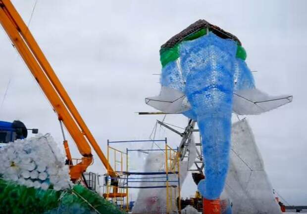 Гигантского слона из пластиковых бутылок соорудили в Архангельске. Акция, целью которой являлось попадание в книгу рекордов Гиннесса, началась в сентябре прошлого года.