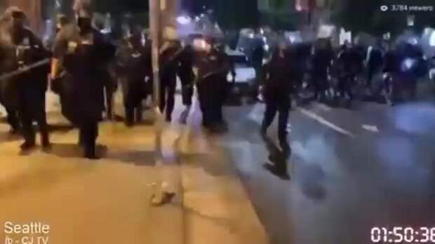 Инцидент произошел в Сиэтле во время акций протеста. На кадрах видно, что полицейские шли по улице, ведя руками велосипеды. На дороге лежал один из протестующих. Сотрудник полиции даже не подумал объехать его, а просто переехал ему голову велосипедом.