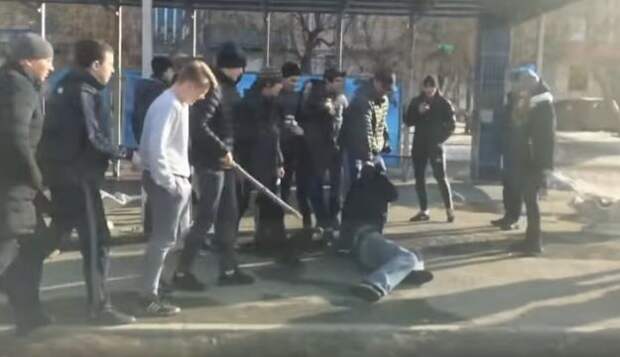 Водители в Челябинске стали свидетелями жестокого избиения толпой одного мужчины. Инцидент произошел на автобусной остановке среди бела дня.