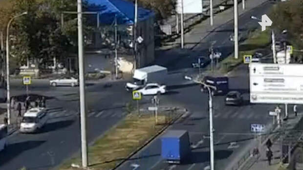 Авария произошла на перекрестке улиц Николая Островского и Кирова. На ролике видно, как "Газель" сначала таранит "Ладу Гранту", а после врезается в топу пешеходов на тротуаре.