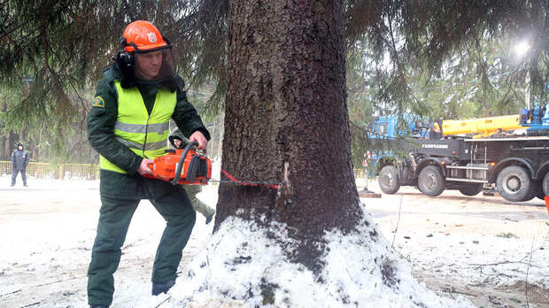 "В Спасскую башню повезем. Размер проезда 3,6 метров, елка практически 10 метров ширина. Поэтому ее надо аккуратненько увязать", - сказал Анатолий Кочанов, замначальника главного эксплуатационного управления управделами президента РФ.