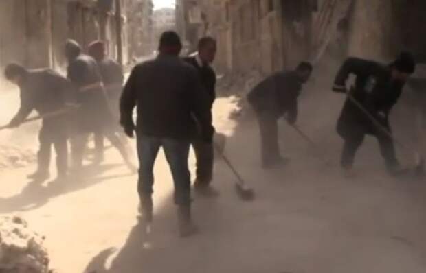 Среди этих рабочих – люди самых разных профессий. Но перед тем как вернуться в свои офисы, магазины и дома, они должны будут несколько месяцев работать с лопатой в руках. Пока это самая востребованная в Алеппо специальность.