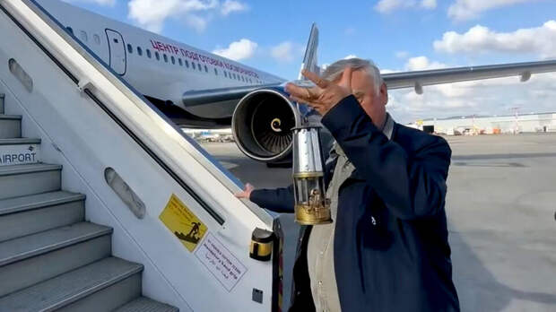 Борт с Благодатным огнем вылетел из Тель-Авива в Москву. РЕН ТВ публикует кадры.