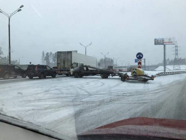 В Сети появилось фото с места массового ДТП на Минском шоссе под Москвой. Как сообщалось ранее, из-за гололеда столкнулись около 30 авто. В результате ЧП, по предварительным данным, пострадали 2 человека.