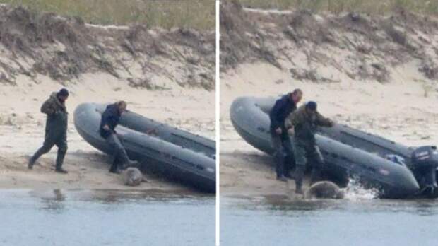 Сотрудники правоохранительных органов проводят проверку после появления в соцсетях фото мужчин, избивающих беззащитных тюленей на берегу на Сахалине. По некоторым данным, изверги занимаются браконьерством.