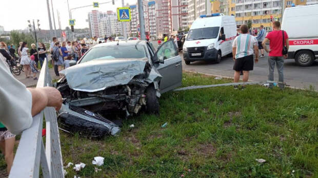 Отмечается, что на регулируемом перекрестке столкнулись Honda и Ford Mondeo. Ford выбросило на тротуар, где находились люди.