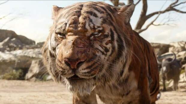 Кадр из фильма "Книга джунглей" Шер-Хан из произведения Редьярда Киплинга «Маугли», судя по описанию, был амурским тигром – у азиатских шерсть жиденькая, чтобы не было жарко. А вот полосок у русского хищника меньше, чем у его азиатских собратьев, но зато сам он в два раза больше азиатского тигра, это самая крупная дикая кошка на планете.