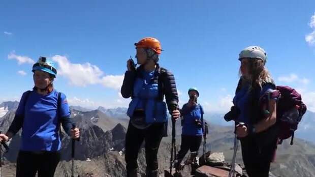 Женская команда Южного поисково-спасательного отряда МЧС посвятила Дню флага России свое восхождение на гору Сахарный Псеашхо.