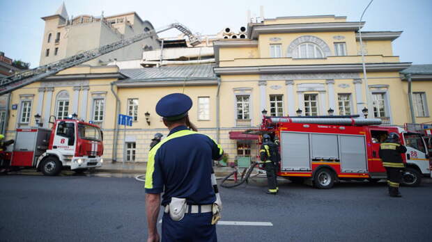 Ранее сообщалось, что пожар произошел на веранде кафе, которая находится на его верхних этажах. По предварительной информации, на веранде отмечали свадьбу.