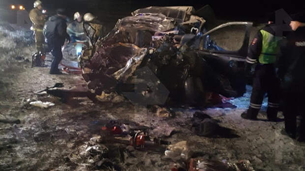 Опубликованы фотографии с места ДТП в Оренбургской области, в результате которого погибли пять человек.