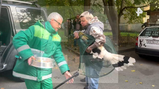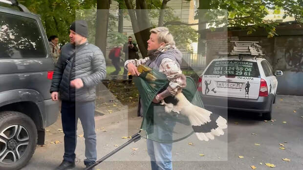 На оказавшихся в распоряжении РЕН ТВ кадрах видно, что птица была поймана с помощью большого сачка.