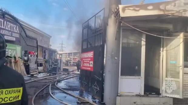 На кадрах с места происшествия виден дым, поднимающийся из торговых рядов.