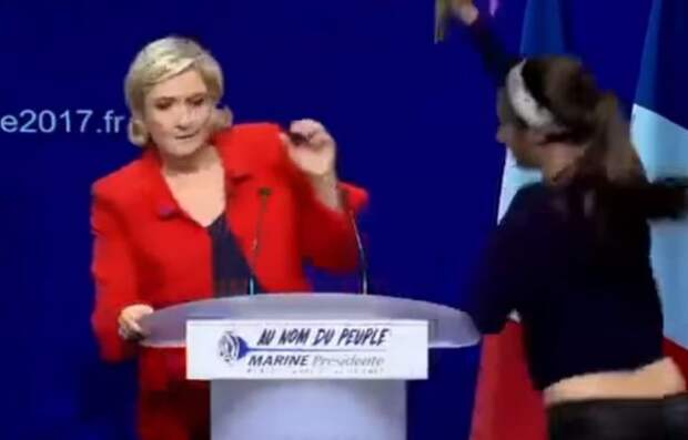 Во время выступления кандидата в президенты Франции, лидера партии "Национальный фронт" Марин Ле Пен неизвестная девушка попыталась прорваться на сцену. Об этом сообщает LCI.