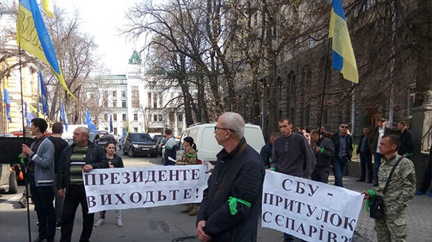 Активисты "Автомайдана" жгли покрышки с "Порошенко" в Киеве->>