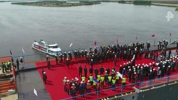 Первыми на середине переправы встретились представители России и Китая и вместе поблагодарили строителей за качественную работу.