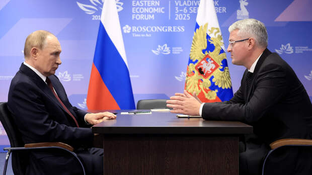 Губернатор Камчатского края Владимир Солодов рассказал президенту РФ Владимиру Путину на полях ВЭФ о восстановлении региона после июльского землетрясения.