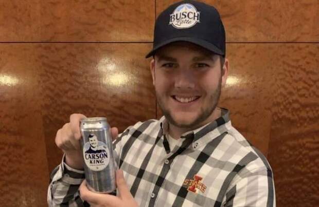 В знак признательности пивная компания предложила 24-летнему фанату годовой запас пива и выпустила банки с его лицом и подписью "Легенда Айовы".