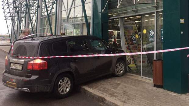 В Петербурге мужчина на авто въехал в супермаркет. Инцидент произошел на улице Камышевая.
