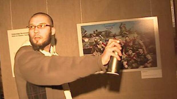Вчера в Сахаровском центре на выставке белорусского фотографа художник испортил краской фотографии украинских карателей.