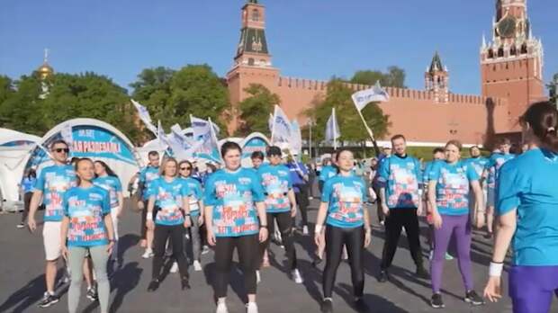 Уже по традиции - сбор участников на площади у Васильевского спуска. На фоне красивых видов в самом центре Москвы участники разминаются, готовятся к старту.