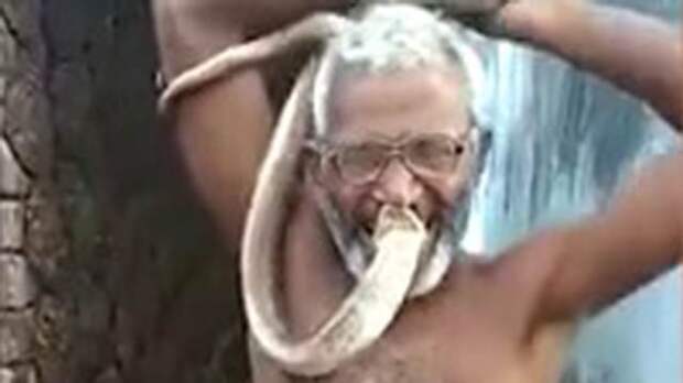 Издание Daily Mail опубликовало ролик, на котором 65-летний Рандхир Махто запихнул голову смертельно опасной змеи себе в рот, после чего начал ее кусать.