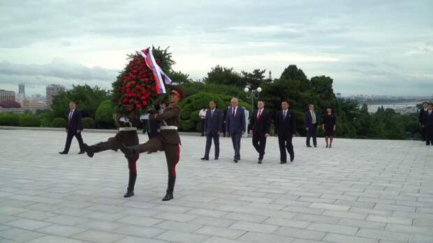 Генеральный прокурор России Игорь Краснов возложил венок к монументу "Освобождение" в Пхеньяне в рамках своего рабочего визита в КНДР.
