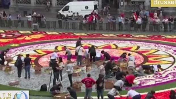 На центральной площади Брюсселя появился знаменитый ковер из сотен тысяч живых цветов. По традиции, его здесь выкладывают один раз в два года.