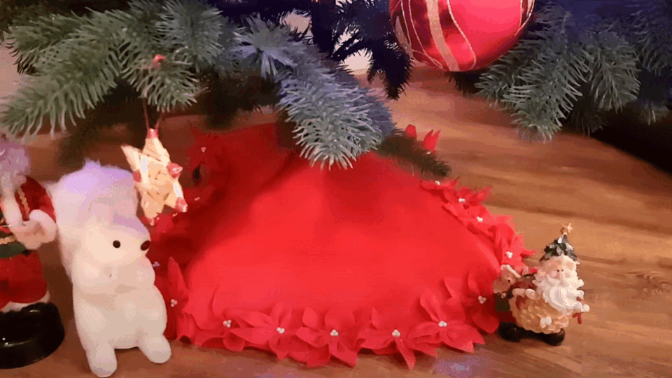 Кадр youtube.com/@vkusnotaprosto Кроме того, "юбочку" для елки можно сшить, связать, склеить из бумаги. Также можно расставить игрушки внизу, но не забывайте соблюдать правила пожарной безопасности.