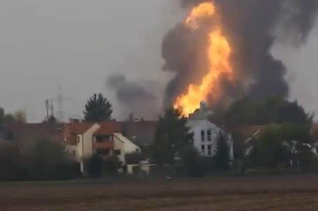 Жители немецкого Лампертхайма опубликовали новое видео пожара. На кадрах видео столб огня возвышается над городом. Взрыв произошел в районе гавани, которая используется для выгрузки легковоспламеняющихся жидкостей и сжиженного газа.