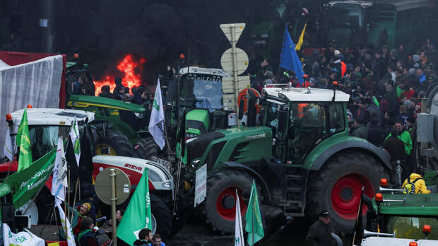 Недовольные политикой ЕС фермеры 1 февраля устроили масштабную акцию протеста перед зданием Европарламента.