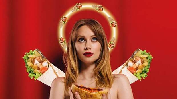 В рекламе известной в Перми сети появился рекламный плакат, на котором изображена полуобнаженная модель в образе мученицы с нимбом вокруг головы и подписью: "Нет смысла быть мученицей ПП (правильного питания — ред.), когда есть божественно вкусная "Шаурма не за горами", где можно поддаться искушению без греха для фигуры".
