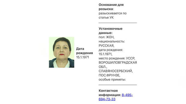 ЦОС ФСБ РФ В базе розыска МВД появилась карточка Зинаиды Серебрицкой, фигурантки уголовного дела о покушении на первого заместителя начальника ГРУ – генерал-лейтенанта Владимира Алексеева.