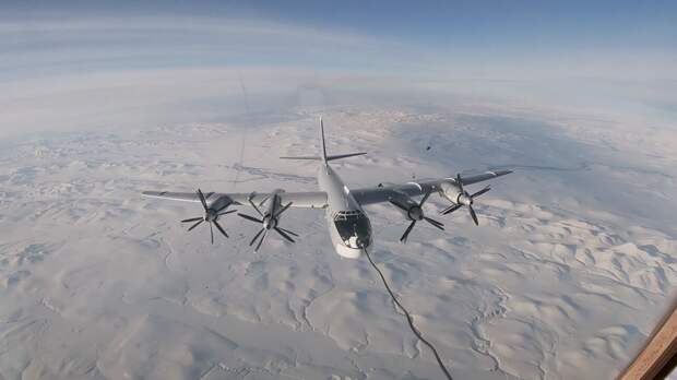 Стратегические ракетоносцы Ту-95МС дальней авиации выполнили плановый полет над нейтральными водами Берингова моря. Они находились в воздухе более 14 часов, передает Минобороны РФ 20 февраля.