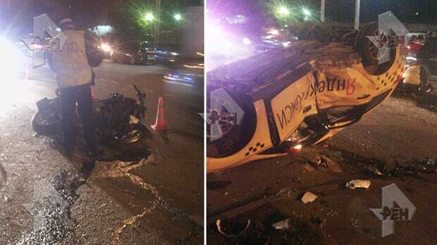 В результате инцидента в госпиталь были доставлены пилот мотоцикла и водитель такси, получившие травмы.