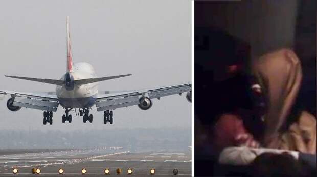 Пассажиры засняли смерть пассажира при посадке самолета в Домодедове. Видео журналистам РЕН ТВ прислали интернет-пользователи. На кадрах запечатлен пенсионер, которому накинули на лицо капюшон. Подлинность видео устанавливается.