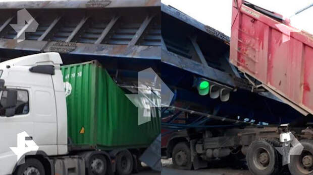 Ранее сообщалось, что авария произошла возле поселка Любань. Грузовик не прошел под мостом по габаритам. На кадрах с камеры наблюдения было видно, как самосвал заезжает под мост на большой скорости, а затем его конструкции рушатся.