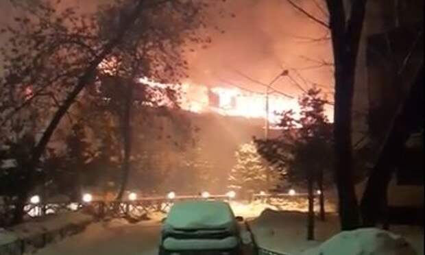 Появилось видео пожара, охватившего здание ресторана в подмосковных Химках. По сообщению источника РЕН ТВ, площадь возгорания оценивается в 1400 квадратных метров. Инцидент произошел на улице Маяковского.