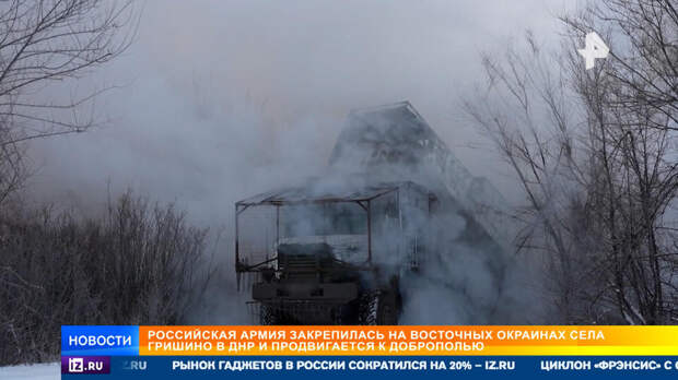 Командир поднимает бойцов, колонна продолжает движение, и – главный момент всей операции. На кадрах объективного контроля видны окрестности села Гришино, опорник ВСУ и рядом с ним сразу три разрыва – так работает боевая часть "Тосочки". Снаряд разделятся еще в воздухе за мгновение перед ударом. Укрепрайон ВСУ полностью уничтожен."Третий снаряд, поднимается высоко след, и заметить можно очень легко. Поэтому ТОС быстро отрабатывает и быстро покидает огневую точку", – рассказал Тимашев.