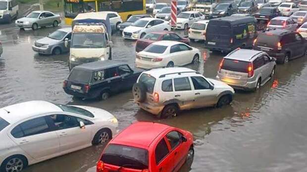 Сильный дождь с грозой и мощными порывами ветра начался в столице около 16 часов.