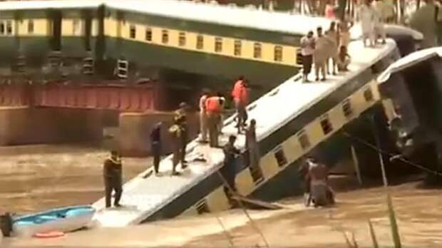 Инцидент произошел в городе Гуджранвала. По данным Geo TV, опоры железнодорожного моста не выдержали нагрузки и рухнули.