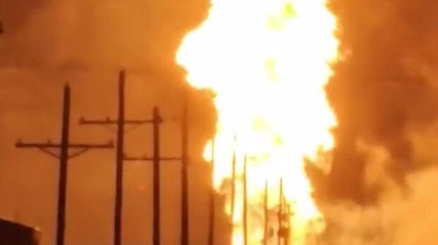 В Оклахоме произошла огненная катастрофа, там горит газовый трубопровод. Огромный факел пламени поднялся на полторы сотни метров.