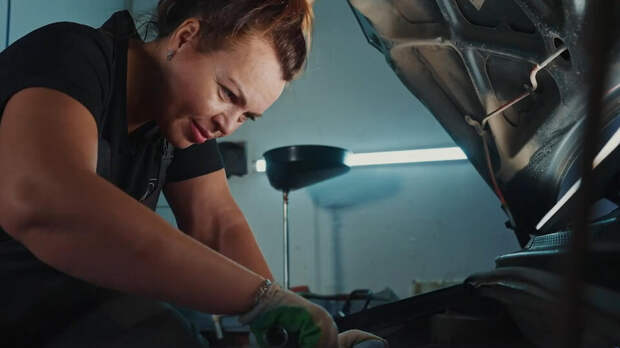 Работа автомеханика плохо сочетается с маникюром женских рук, прической и нарядом.