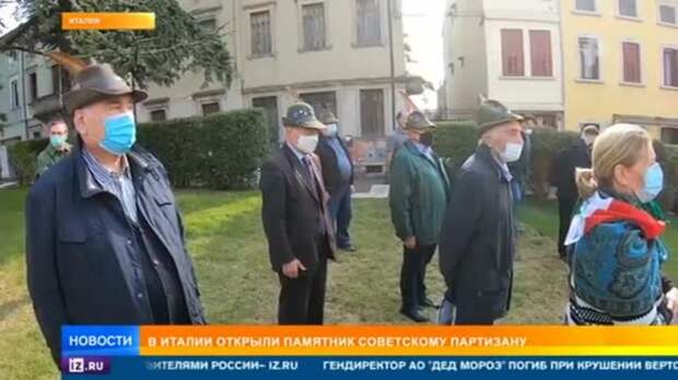 Полиция перекрыла все подъезды к центральной площади городка Кальдьеро для того, чтобы здесь смогли спокойно провести это открытие. И это одно из немногих публичных мероприятий, которые сейчас в Италии разрешены в принципе. Ситуация с COVID-19 в стране сейчас такая, что даже на улицах всем предписано носить маски. Но узнав, что мы телевидение из России, мэр города нарушает даже это железное правило. Он не считает возможным говорить о подвиге советского партизана, "скрываясь от какого-то вируса".