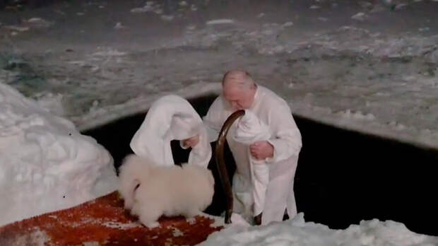 Во время купаний рядом с Лукашенко был его шпиц по имени Умка. Собака не отходила от президента даже после того, как он вышел из проруби.