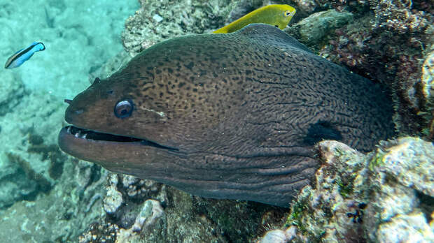 Вокруг столпились туристы, которые с ужасом смотрели на мурену.Мурена – хищная морская лучеперая рыба, у нее змеевидное тело и клыковидные зубы. Считалось, что мурены не нападают на людей. Но если почувствуют угрозу от человека, то могут укусить его. Смертельных случаев от укусов мурен официально не зарегистрировано.