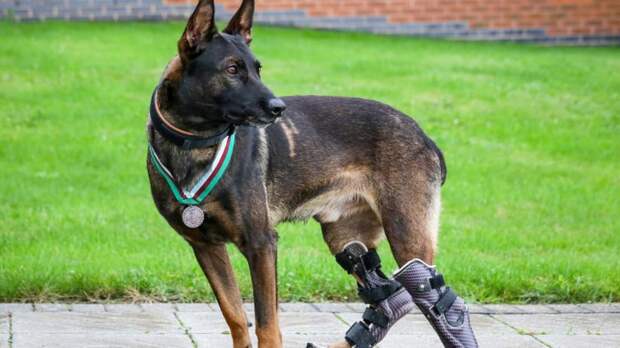 Бельгийская овчарка Куно получила медаль британской благотворительной организации за спасение солдат в Афганистане. В ходе успешной операции в этой "горячей точке" пес потерял задние лапы.