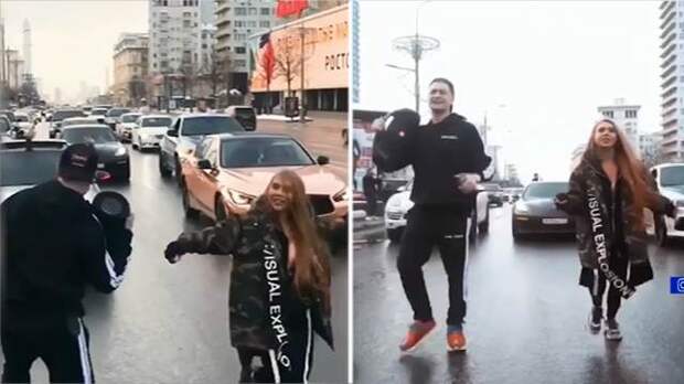Такое видео наверняка соберет много лайков. Несмотря на сомнительные поэтические достоинства песни. Все бы ничего, да это проезжая часть. Центр Москвы. И на видео со съемок слышно, как водители, нажимая на клаксон, ставят свои дизлайки тем, кто перекрыл оживленную улицу ради потехи.Малоизвестные музыкальные исполнители, а по совместительству блогеры Давид Манукян и Карина Лазарьянц во время съемок своих клипов зажигают у небоскребов Москвы-Сити и на скамейках в торговых центрах. Правда, за колоннами, чтобы охрана не видела. А тут решились на такое: перекрыть Новый Арбат!