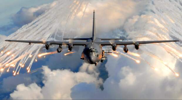 Самолет AC-130 является вооруженной модификацией транспортника C-130 "Геркулес", самая современная версия вооружена одной пушкой GAU-23/A калибра 30 мм и одной пушкой М102 калибра 105 мм. Экипаж такого самолета составляет до 12 человек, эти самолеты используются командованием специальных операций ВВС США.