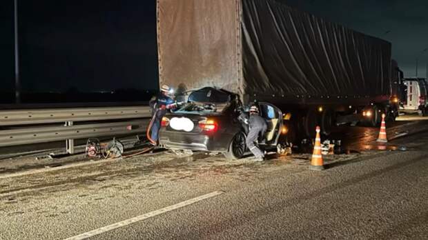 "Водитель 2000 года рождения, управляя BMW 320... не выбрал безопасную скорость движения, в результате чего допустил наезд на остановившийся по причине поломки в левой полосе "ДАФ 105", в составе с полуприцепом "Кроне", – указано в телеграм-канале ведомства.